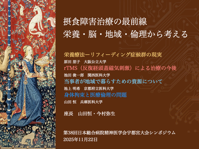 肥満症治療には、2014年から保険適応となった高い減量効果が期待できる外科治療があるが、術後に自傷・自殺が増えるとの報告から、術前のメンタル評価は各国のガイドラインで重要性が記載されている。また、最近GLP-1受容体作動薬が抗肥満薬として注目されたが、アイスランド医薬品庁が2023年7月にリラグルチドとセマグルチドに自殺念慮や自傷行為の症例が不釣り合いに多いと報告し、FDAやEMAが調査に乗り出した経緯があった。その後の調査で問題なしとなり日本でも保険適応され投与が始まっているが食欲を抑える作用はメンタルへの影響もないとは言えず、懸念は残る。また、外科治療もスリーブ胃切除術だけではなくバイパス術も2024年から保険適応になった。そのため今後よりいっそう肥満症治療におけるメンタル面の評価と配慮が必要であり、精神科を含むチーム医療が重要であり、本学会においてのシンポジウムを企画するに至った。